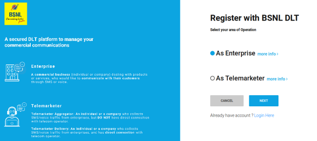 In order to register with Tata Telecommunications for DLT, please follow the below steps.